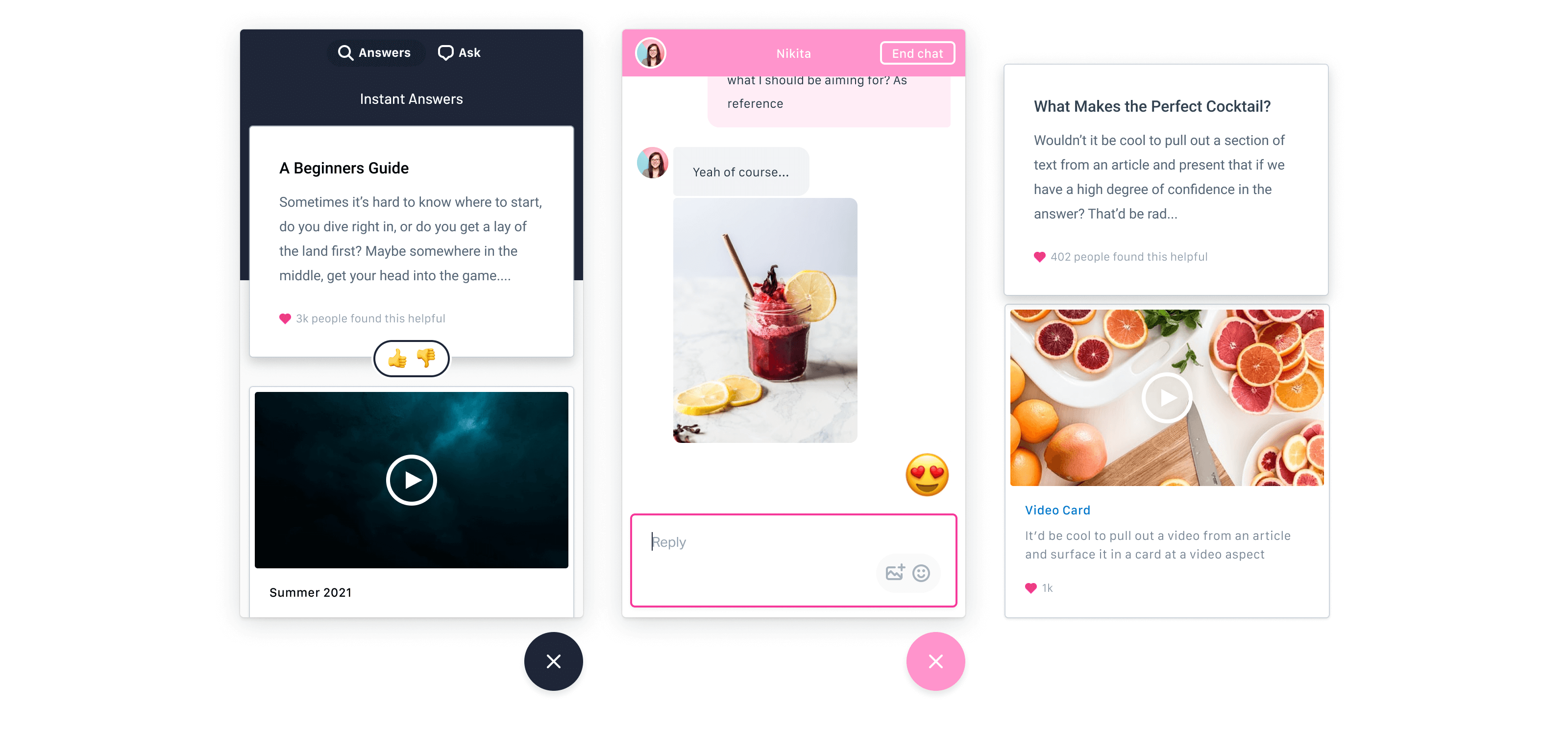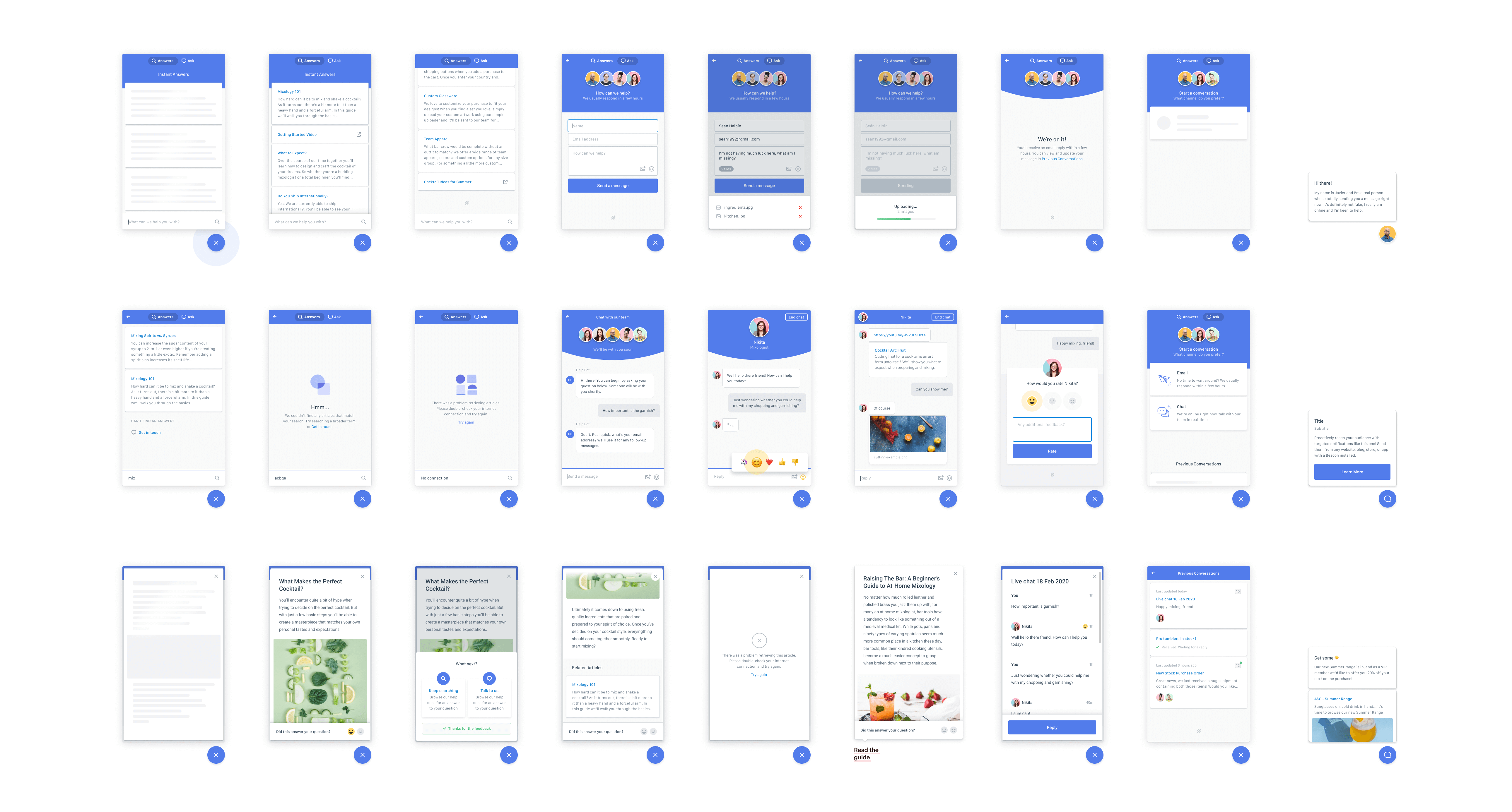 Another key realization was the importance of UI details and micro-interactions to give each Beacon a fun and friendly personality, whilst also remaining unique to the brands and websites that were hosting the widget. As each Beacon could be branded and translated, personality came in the form of subtle animation and fun, unusual and sometimes-a-bit-weird interactions.
